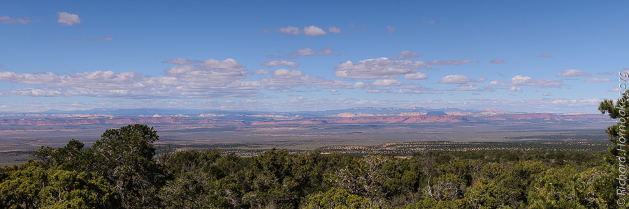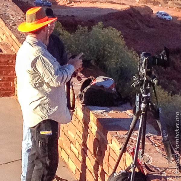 We only made one stop along the way at a vista just inside the Arizona border with Utah. As much as anything, it was an opportunity to give our new 150mm (6-inch!) graduated neutral-density (GND) filters their first run. We’d each bought a set of these jumbo filters and the associated holder for Nikon’s 14-24 lens – because of its shape and field of view, a special filter holder is needed for this lens, along with 150mm x 170mm (6″ x 7″) GND filters. We figured out quickly that it was going to be tough to tote these giant filters, and handling them without smudging or scratching would take patience.