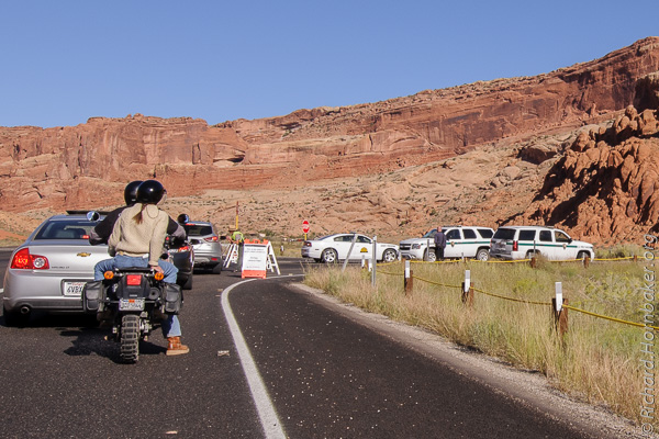 This was the scene at the entrance to Arches National Park in Southeastern Utah, with park rangers barricading the entrance and turning away traffic: