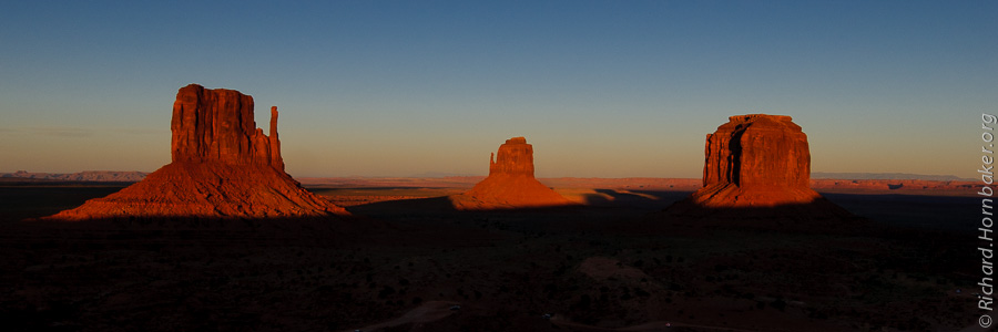 I took a different approach for this shoot and captured a *lot* of images.  I expected to post-process it in HDR, and possibly even composite images from different times during the sunset.  I set the camera to bracket 9 shots at 1/3-stop intervals, so I’d be able to draw out the shadow detail without it looking extreme.  Primary exposure was slightly under-exposed for the directly-lit monuments, with bracketing ranging from 1-1/3 stops brighter to 1-1/3 stops darker.