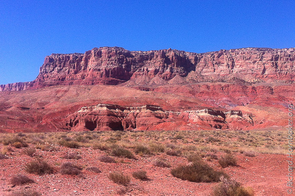 The weather was fantastic for the drive, and this section of the country has an amazing variety of colorful terrain. Along the way was the Vermillion Cliffs National Monument, on the northern edge of Arizona just West of Page, AZ.