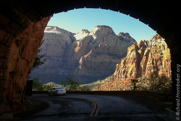 Also impressive is a mile-long tunnel cut through the mountain, allowing the main road to pass through the park. Clearance in the tunnel is so narrow at points that traffic must become one-way anytime an RV-sized vehicle needs to pass (which is pretty frequent).